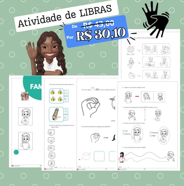 Aprenda Libras de forma eficaz e divertida com atividades práticas e interativas. Ofereça um material didático completo para os alunos aprenderem a língua de sinais.